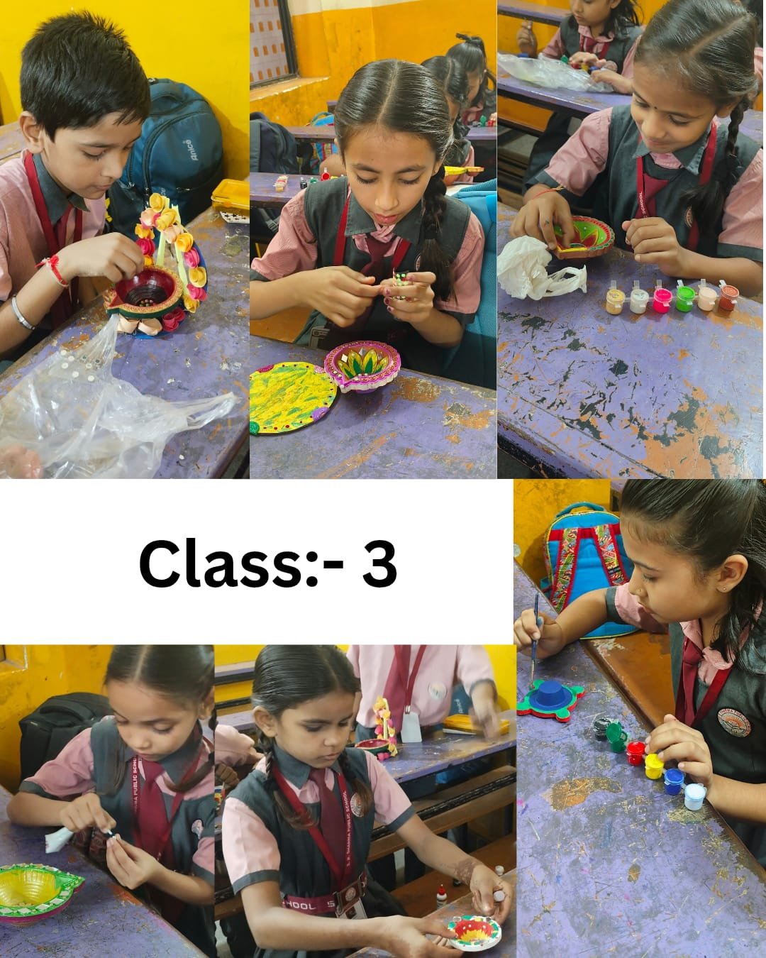 Students showcased their creativity and festive spirit by beautifully decorating diyas with vibrant colours, mirrors, and glitters. 💫